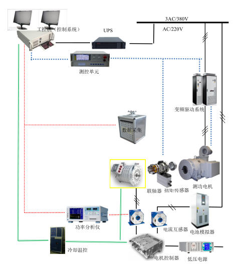 該系統(tǒng)由德國嘯馳(SCHORCH)測功電機(jī)、ABB變頻器、德國HBM扭矩傳感器及電機(jī)冷卻系統(tǒng)組成,并具有以下特點(diǎn):