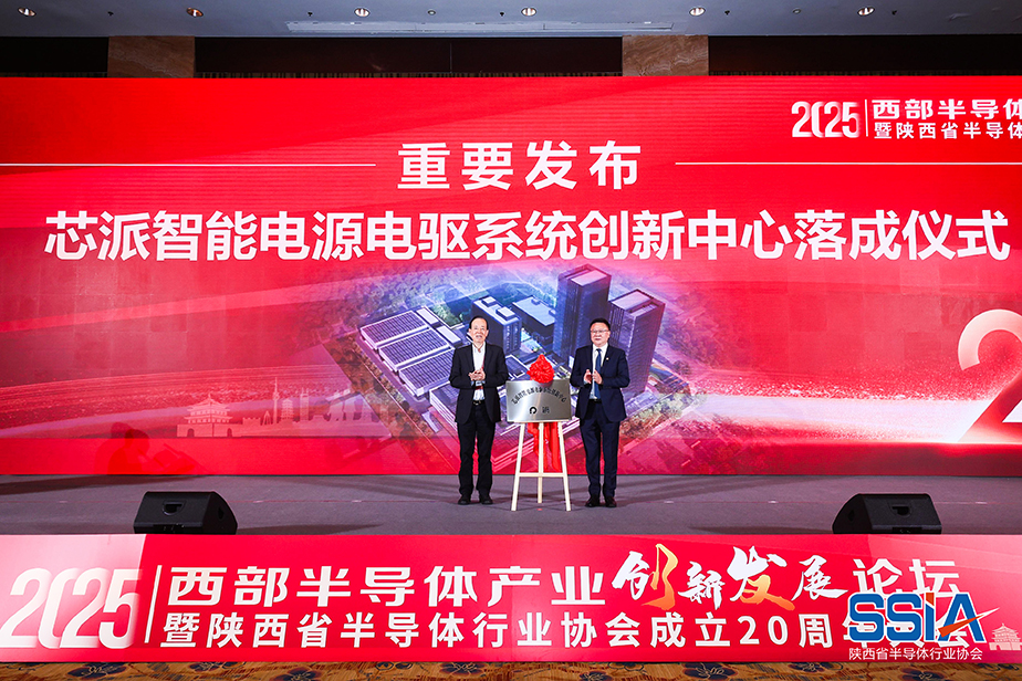 芯派智能電源電驅(qū)系統(tǒng)創(chuàng)新中心落成儀式,作為大會(huì)的核心議程之一,受到了參會(huì)各方的廣泛關(guān)注。中國科學(xué)院院士、陜西半導(dǎo)體行業(yè)協(xié)會(huì)榮譽(yù)理事長郝躍院士,與芯派科技董事長羅義共同為芯派智能電源電驅(qū)系統(tǒng)創(chuàng)新中心揭牌。