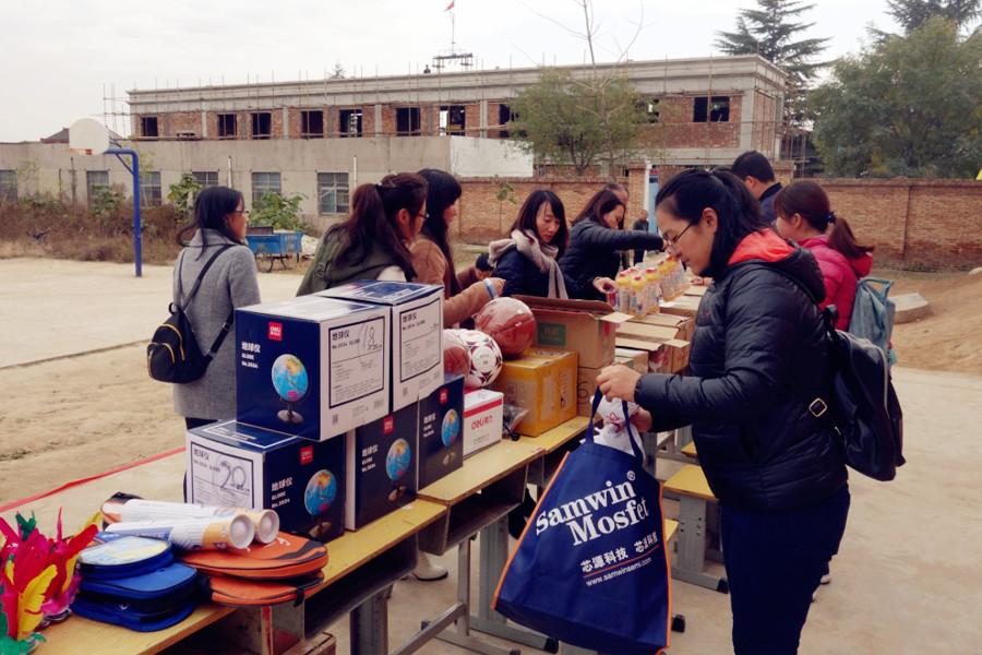 當(dāng)我們的孩子足不出戶就可以在電腦前了解到世界各式各樣的信息動(dòng)態(tài)的時(shí)候,當(dāng)我們的孩子隨手就可以在外面的書(shū)攤報(bào)亭買到自己想看的書(shū)籍的時(shí)候,當(dāng)我們的孩子自由自在地在書(shū)海中遨游的時(shí)候,每每想起,在偏僻的村莊有一群孩子獲取知識(shí)和信息的渠道并不是如此豐富,想起那一雙雙對(duì)知識(shí)渴望的眼神,總是深深觸動(dòng)著每一個(gè)人。11月10日,西安芯派電子科技公司李琳斐副總帶領(lǐng)公司一行20余人走進(jìn)富平到賢鎮(zhèn)杜家小學(xué),踐行企業(yè)社會(huì)責(zé)任,進(jìn)行了一次別開(kāi)生面的愛(ài)心助學(xué)捐贈(zèng)活動(dòng)。